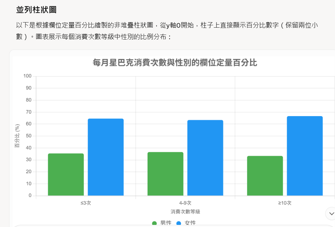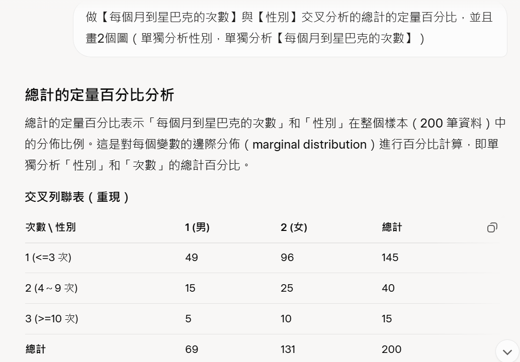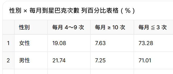 ※(1).【成果Demo】:客戶【每個月到星巴克的次數】與【性別】是否存在顯著關聯?】